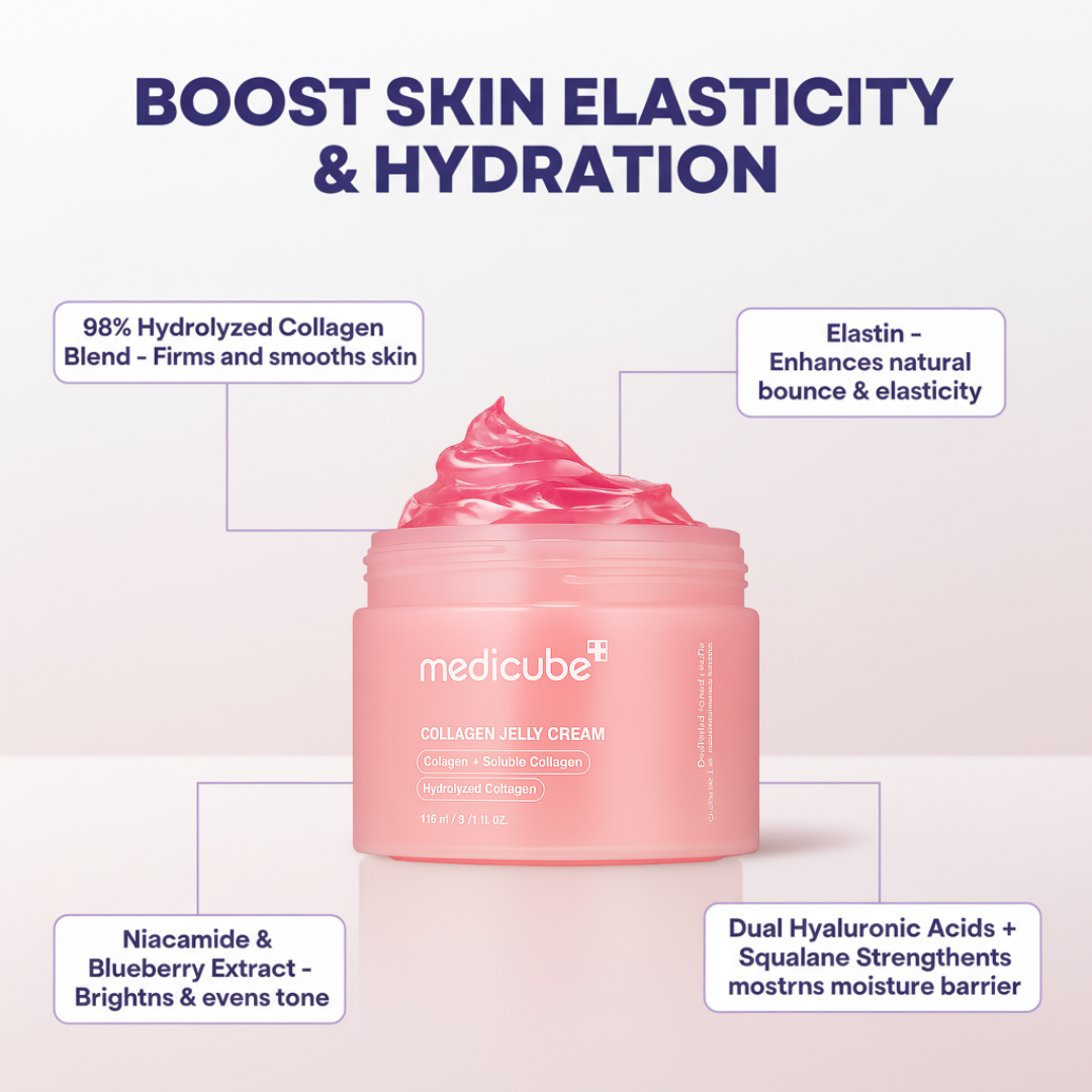 โ 98% hydrolyzed collagen blend + elastin for firm skin โ Niacinamide and blueberry extract for brightness โ Dual hyaluronic acids and squalane for deep hydration โ Lightweight jelly-cream texture with natural pink tint โ Dermatologist tested, sensitive skin approved