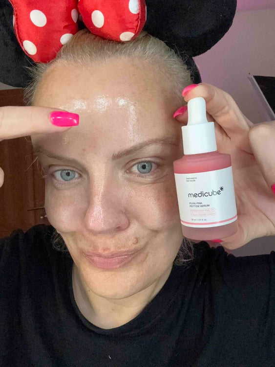 "I hate sticky skincare, but this texture is perfect. Itβs pink, lightweight, and sinks in immediately. My sensitive skin drank it up, and my makeup sits perfectly on top of it."